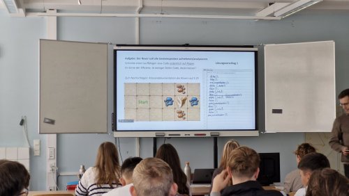 A jak vypadají hodiny na německém gymnáziu? Všichni studenti od 6. třídy mají své iPady a učitelé s nimi sdílí materiály v prostředí One Note (obdoba Classroomu). Učitel může u mladších studentů sledovat to, co student na iPadu právě dělá, jak rychle postupuje v plnění úkolu atd. Vyučovací hodiny jsou postaveny kompletně odlišně oproti českému vzdělávacímu systému, protože 50 % známky tvoří aktivita v hodinách. Proto jsou studenti hodně aktivní, stále se hlásí, diskutují o pojmech, sdělují své názory, stále se snaží do hodin zapojovat. Zbylých 50 % známky pak tvoří známky z testů, ústního zkoušení (forma je v gesci učitelů, minimálně jsou to 2 známky za pololetí). Mladší žáci jsou hodnoceni známkou (od 1 do 6, kdy 6 je nejhorší známka) a starší jsou hodnoceni body (od 0 do 15, přičemž 15 bodů znamená sehr gut plus). A největší zajímavostí je, že pokud student či studentka odpoví moc dobře, tak jej celá třída ocení klepáním prsty na lavici.