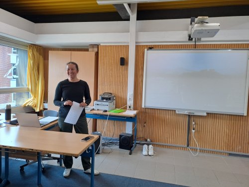 A pak jsme již nastoupili přímo do výuky. Překvapilo nás, že většina hodin trvá 90 minut. Také nás překvapilo, že studenti nemají kmenové třídy a že se na každou hodinu stěhují. A to, že mají ve vyšších patrech koberce. A aby těch překvapení nebylo málo, tak nás překvapila i zima, která ve škole byla. Studenti se nepřezouvají, celý den jsou v botách, mikinách a občas i v bundách. Učitelé i studenti hodně větrají, často se na chodbách kromě studentů prohání i studený vítr.