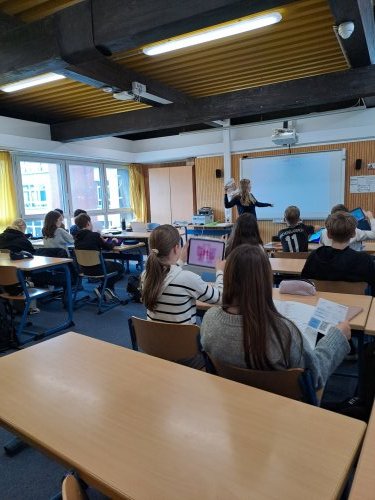 Mgr. Soňa Patočková se zaměřila na sledování výuky v hodinách informatiky, geografie a anglického jazyka. Výuka informatiky se většinou odehrává jako kombinace tvz. unplugged metod, tedy metod, kdy není zapojen počítač a studenti pracují s tužkou a papírem, a práce s počítačem. Žáci se učí programovat; začínají v programu Scratch, později se přidá programovaní v Pythonu a ti nejzdatnější pak pokračují v programování v Javě. K programování v Javě přistupují formou aktivity, kterou lze označit jako „Mars rover programming“, kde programují cestu vozítka Mars roveru a sbírání různých přírodnin a vyhýbání se překážkám. A co zaujalo Mgr. Patočkovou? „Osobně mě překvapila vybavenost učeben. Očekávala jsem spoustu učebních pomůcek, od 3D tiskáren, laserů, robotických ramen, robotů atd. Nic z tohoto vybavení ovšem v německé škole není. V každé třídě ale mají interaktivní tabuli propojitelnou bezdrátově s iPadem či notebookem“, řekla Patočková. „Také jejich systém práce se studenty je hodně inspirativní a je vidět, že se hodně řeší na celostátní úrovni. Role učitele je v Německu vnímána spíš jako role průvodce studiem či mentora, který žáky provází záludnostmi jím vyučovaného předmětu. Samotná aktivita je na studentech a jak již tady bylo řečeno, tak jejich aktivita se promítá do výsledné známky z padesáti procent“. V hodinách geografie, které jsou ve vyšších ročnících vedeny v anglickém jazyce, se studenti zaměřují spíše na humánní geografii, například na globální problémy lidstva. Studenti v průběhu hodiny sdělují své názory, postřehy, pracují s materiály, články, pracovními listy (které mají k dispozici ve svých iPadech). Učitel dává žákům prostor na zpracování daného tématu a spíše než o klasickou výuku, jde o kontinuální diskusi mezi studenty a učitelem. Pokud se najde někdo, kdo v danou chvíli nechce odpovídat nebo neví odpověď na otázku, nevadí to. Prostě se zapojí o něco později, až si bude jistý. Výborné je, že ve chvíli samostatné práce učitel diskutuje s těmi žáky, kteří třeba nerozumějí zadání nebo si chtějí ověřit, že informace, kterou chtějí použít a kterou si pamatují, je správná. Výuka anglického jazyka v nejvyšším ročníku je zaměřena na práci s textem, jeho analýzou. V navštívené hodině šlo o rozbor slavného projevu Martina Luthera Kinga Jr. „I have a dream“. Studenti se na tomto projevu učili, jak začít se shrnutím projevu, jak projev hodnotit a spolu s učitelkou Tanjou vytvářeli hodnotící mentální mapu.