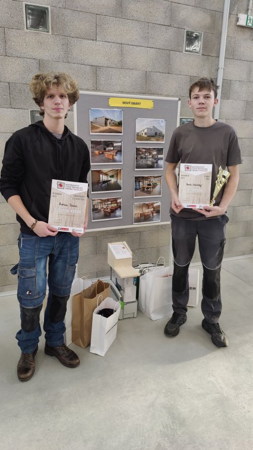 Konkurence byla velká, soutěže se zúčastnilo celkem jedenáct škol z Moravy, kdy každá nominovala dva žáky. Zadání bylo vyrobit krmítko pro veverky podle výkresové dokumentace během pěti hodin a to pouze ručním nářadím Kluci své práce zvládli velmi dobře a při slavnostním vyhlášení, jsme tak byli plni očekávání. Nakonec se Marek umístil na skvělém 2. místě se ztrátou pouhých dvou bodů na vítězství. Ani Adrian nezůstal pozadu a získal nakonec 5.místo a znovu jsme potvrdili, že naše škola v soutěžích oboru truhlář dlouhodobě patří mezi nejúspěšnější.