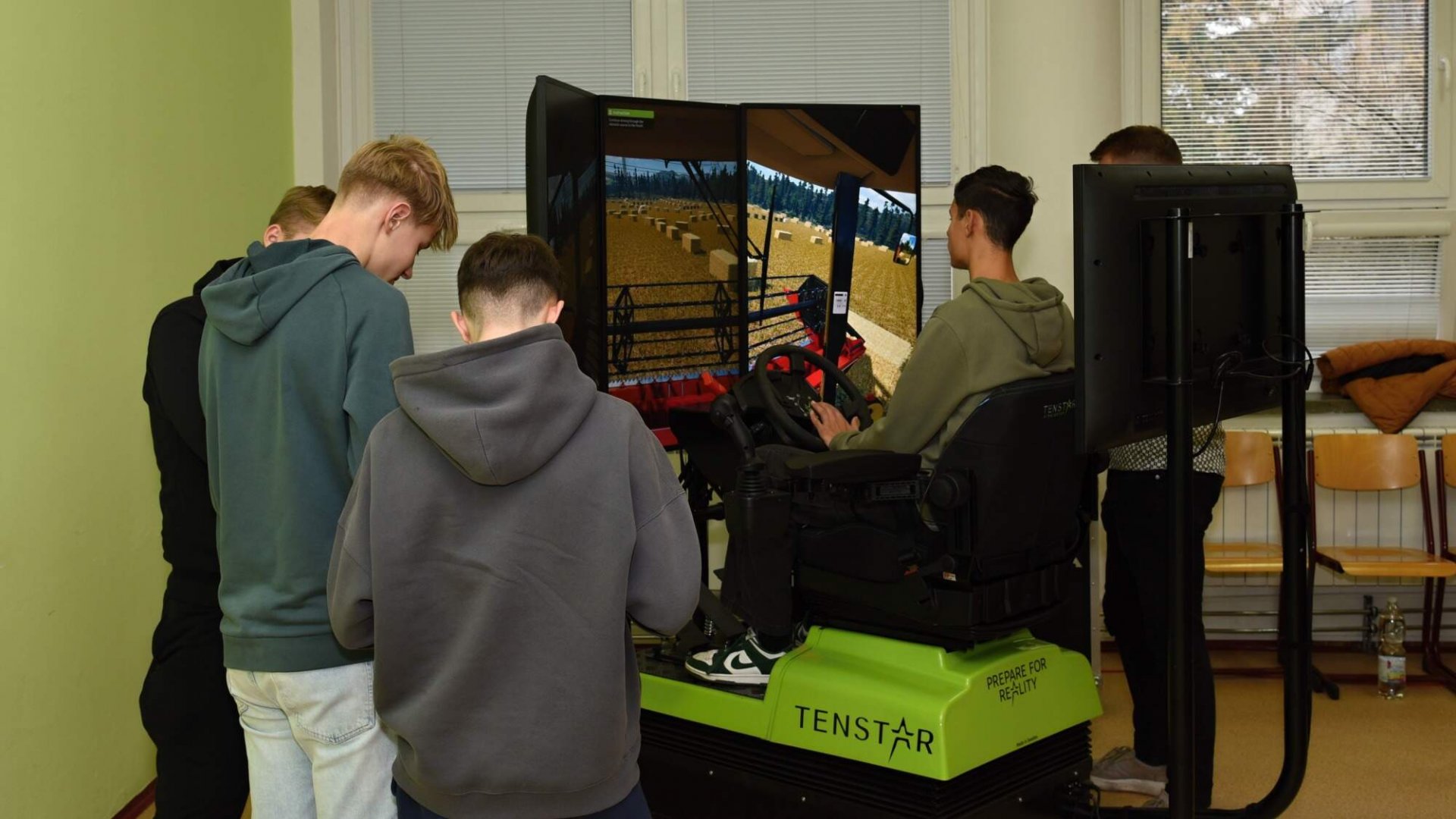 Pro studenty oborů agropodnikání a mechanik opravář motorových vozidel nově pořídila profesionální simulátor TENSTAR Simulation od švédského výrobce. Studenti tak získají praxi nejen v řízení osobního či nákladního auta, traktoru, kombajnu, ale zvládnou i krizové situace a v ovládání pracovních nástavců, a to vše bez rizika nehody, opotřebení techniky nebo spotřeby paliva.