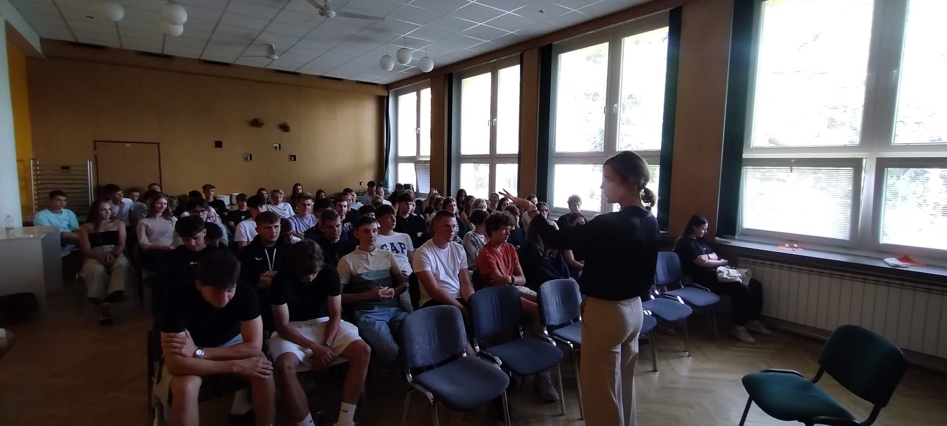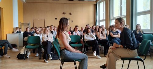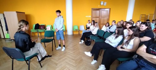 V prvním bloku se žáci seznámili s tím, jaký význam může mít první dojem, neverbální komunikace a postoj. Diskutovali jsme o častých komunikačních chybách a o tom, jak si uvědomit vlastní působení na druhé. Důležitým tématem byl i vztah k sobě samému a k okolí – rozdíl mezi respektem a strachem, ale také role mladých lidí ve společnosti, tlak vrstevníků či manipulace. Lektorka vedla žáky k tomu, aby dokázali vědomě volit svůj styl a chování.